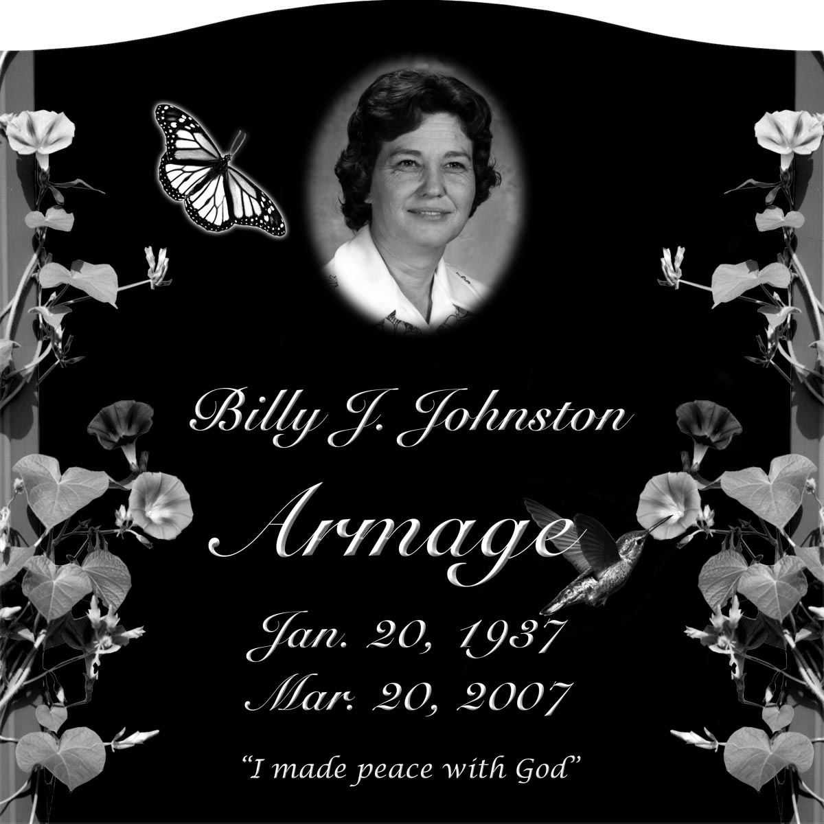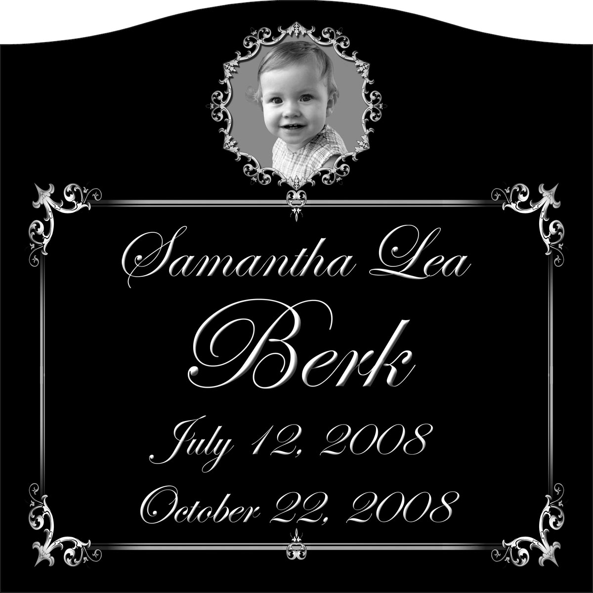 You can also have your favorite photograph permanently transferred onto a porcelain plaque to make a distinct addition to your selection. Contact us for more information.